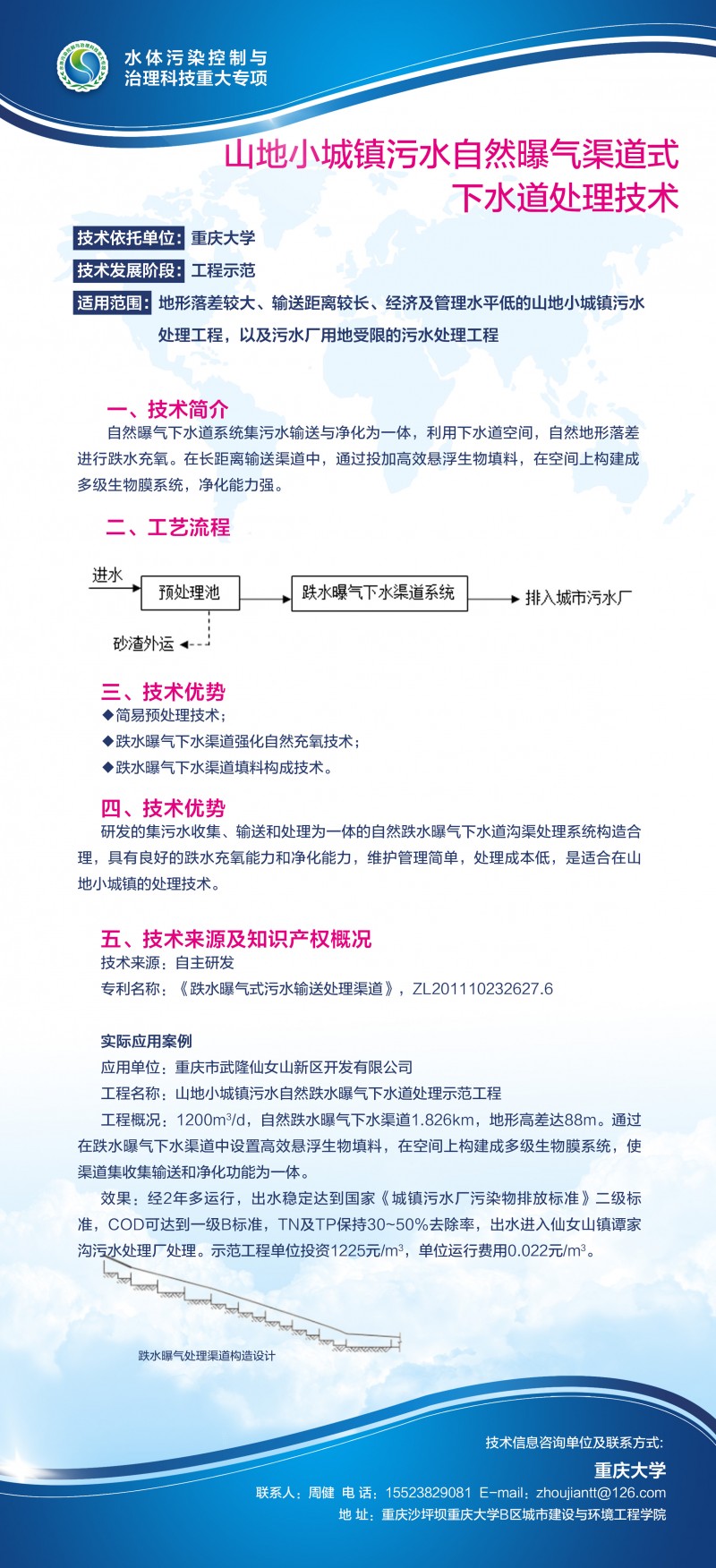山地小城镇污水自然曝气渠道式下水道处理技术