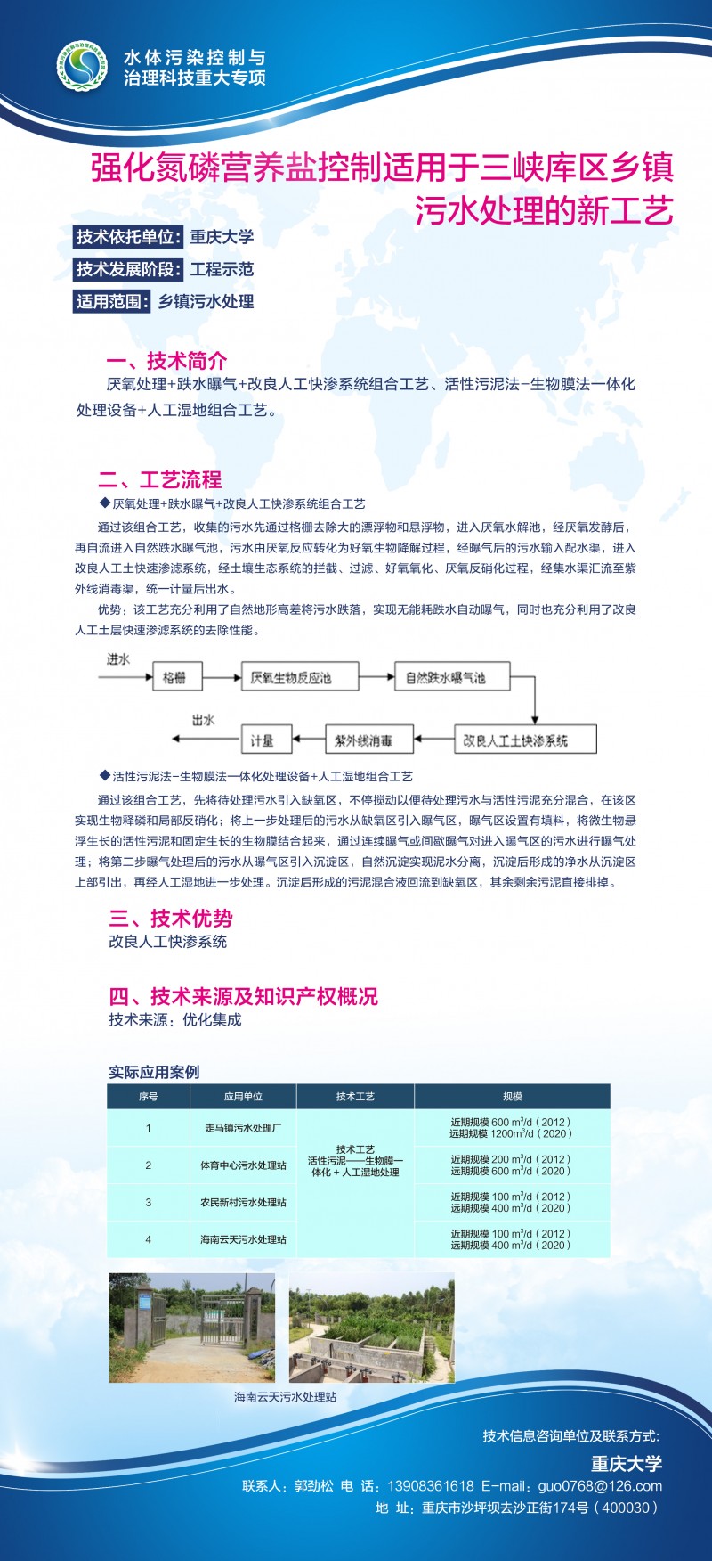 强化氮磷营养盐控制适用于三峡库区乡镇污水处理的新工艺