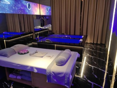 环境是体验的开篇惊喜。以3.56万平方米的超大空间惊艳全场,欧式宫廷风装修搭配16米挑高大堂,水晶吊灯与雕花装饰尽显质感,15000余平方米的休闲区涵盖汗蒸乐园、躺式影院等多元场景。水疗局是年轻人的心头好,16000平方米空间将汤泉与电竞、保龄球等项目结合,网红打卡设计随手出片,星空顶汗蒸房氛围感拉满。戏水区堪称一绝,超大不规则泳池搭配多个特色温泉池,水质清澈且实时公示检测结果,让人泡得安心。