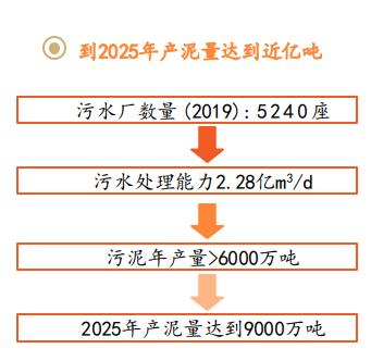 2019年我国污泥产生量预估已超过6000万吨,由于污水产生量和污水处理率不断提高,污泥产生量仍将继续增加,预计到2025年污泥产生量达到9000万吨。