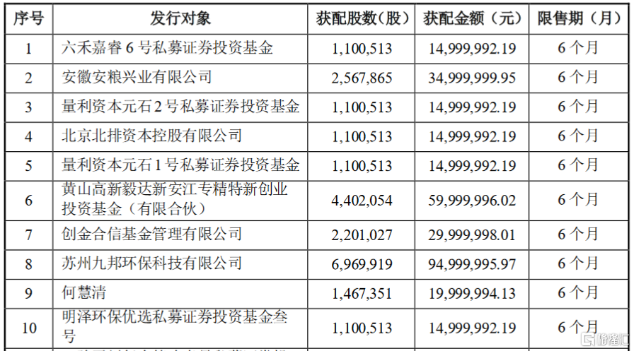 中环环保披露创业板非公开发行股票上市公告书,根据投资者申购报价情况,《认购邀请书》中确定的价格优先、认购金额优先、认购时间优先的原则,确定此次发行价格为13.63元/股,发行数量为4035.2158万股,募集资金总额约5.50亿元,将投向惠民县生活垃圾焚烧发电项目、泰安市岱岳新兴产业园供排水一体化PPP 项目,及补充流动资金。未超过发行人股东大会决议和中国证监会批文规定的上限。