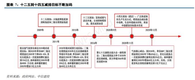 “十四五”:“碳达峰、碳中和”。2020年中央经济会议将碳达峰和碳排放工作列为2021年八大重点任务之一。2021年1月,习总书记在达沃斯议程对话会上发表特别致辞,再一次强调中国将全面落实联合国2030年可持续发展议程。