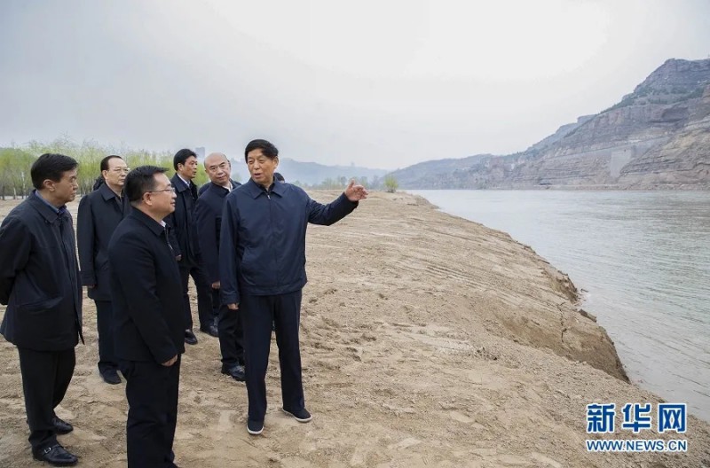 4月13日,中共中央政治局常委、全国人大常委会委员长栗战书在陕西西安主持召开黄河保护立法座谈会。这是4月9日,栗战书在榆林考察黄河流域生态保护情况。新华社记者 黄敬文 摄