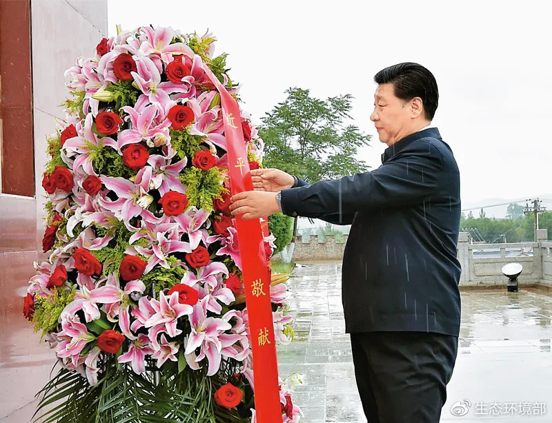 2016年7月18日至20日,中共中央总书记、国家主席、中央军委主席习近平在宁夏调研考察。这是7月18日上午,习近平在固原市西吉县将台堡向红军长征会师纪念碑敬献花篮。 新华社记者 李涛/摄
