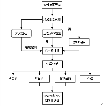 本项技术包括环境要素的选取、数据正态分布检验、数据转换、克里格插值、空间异质性特征分析,技术路线见图。