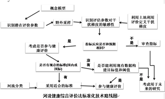 基于主动性指标选择与参照条件制定的河流健康综合评价法,主要包含六个关键技术内容:如下图。