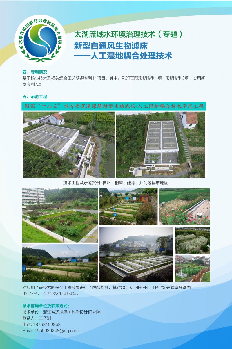 • 新型自通风生物滤床——人工湿地耦合处理技术