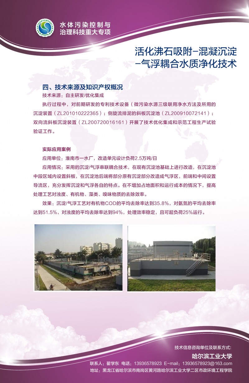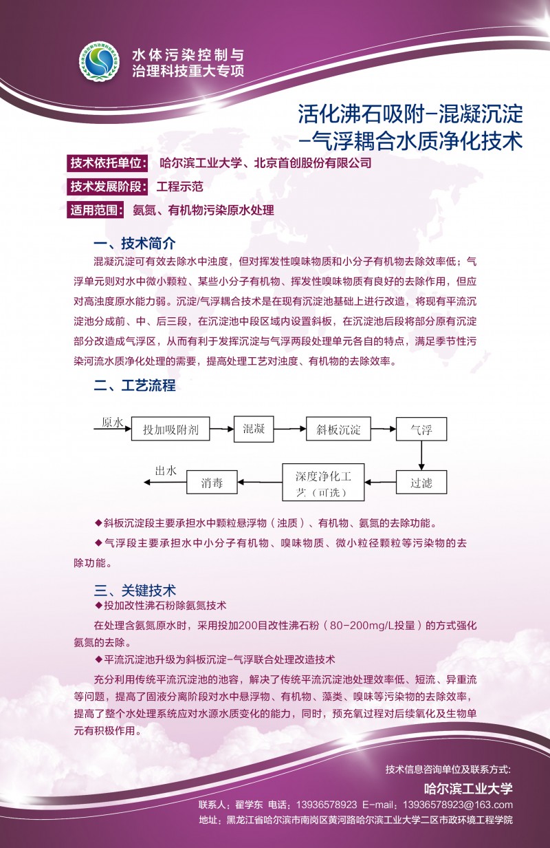 活化沸石吸附—混凝沉淀—汽浮耦合水质净化技术